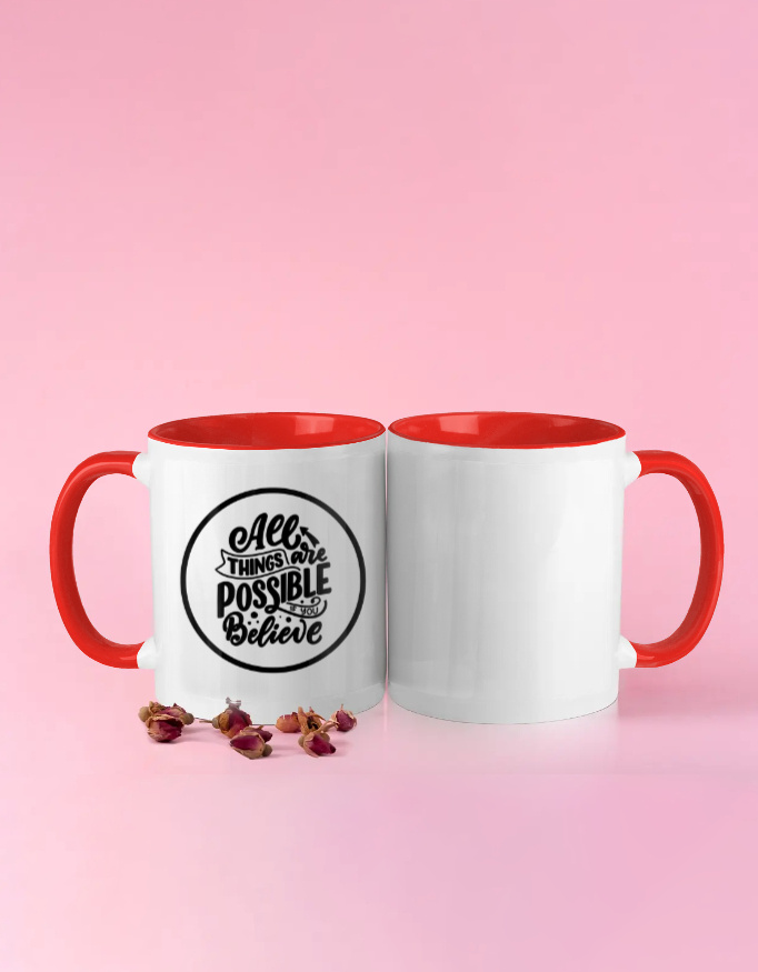 “Inspirational All Things Are Possible” print with a clean, modern layout. 11 oz capacity designed for comfort and daily use.