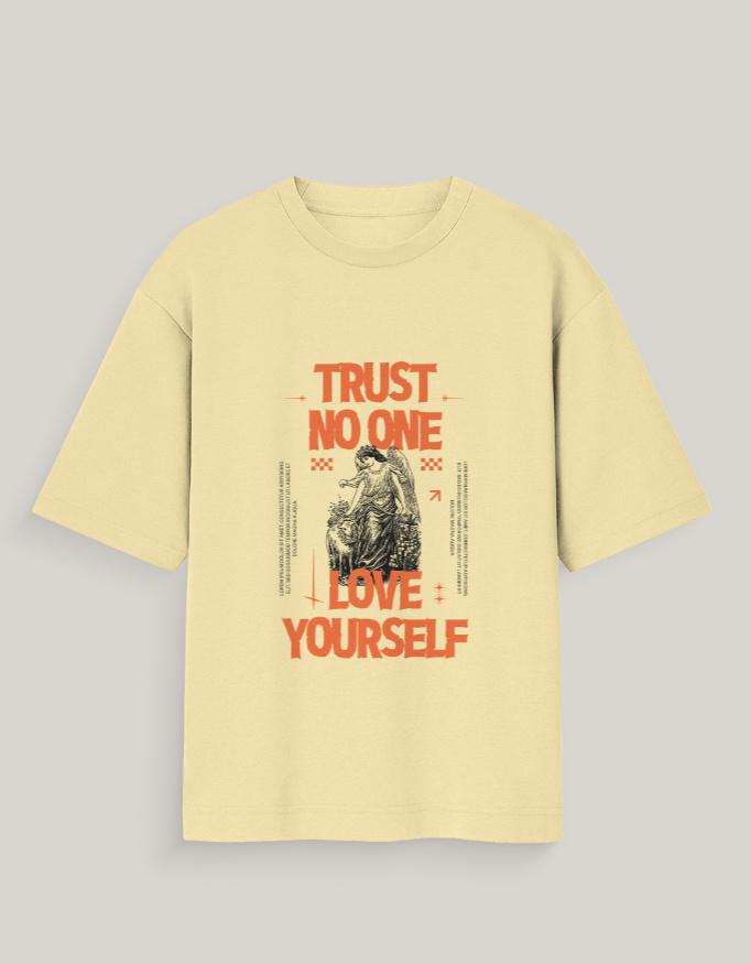 Make a powerful statement with our “Trust No One, Love Yourself” Oversized T-Shirt, designed for those who believe in self-worth, confidence, and fearless individuality. This bold motivational graphic represents strength, self-respect, and independence — perfect for modern streetwear lovers.